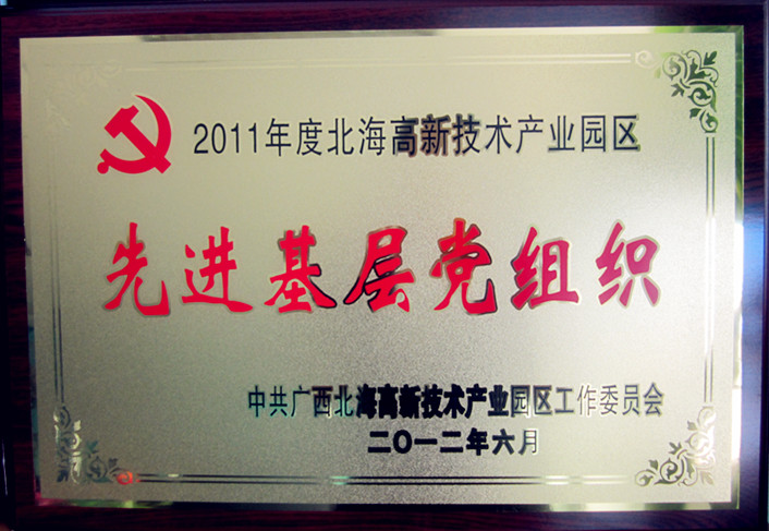 公司黨支部榮獲北海高新區(qū)管委會授予“2011年度先進基層黨組織”稱號。