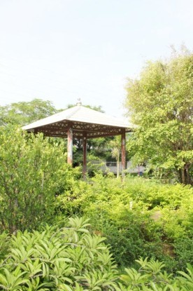 掩映在綠樹(shù)叢中的休閑涼亭