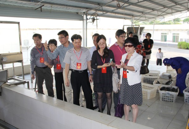 在正五公司,楊桂蓮一行對廠區(qū)進(jìn)行了視察,副總經(jīng)理崔小祥在羅非魚卸貨區(qū)向政協(xié)常務(wù)委員們介紹了正五公司羅非魚生產(chǎn)情況。楊桂蓮一行充分肯定了正五公司在北海水產(chǎn)品行業(yè)中所做出的貢獻(xiàn)。