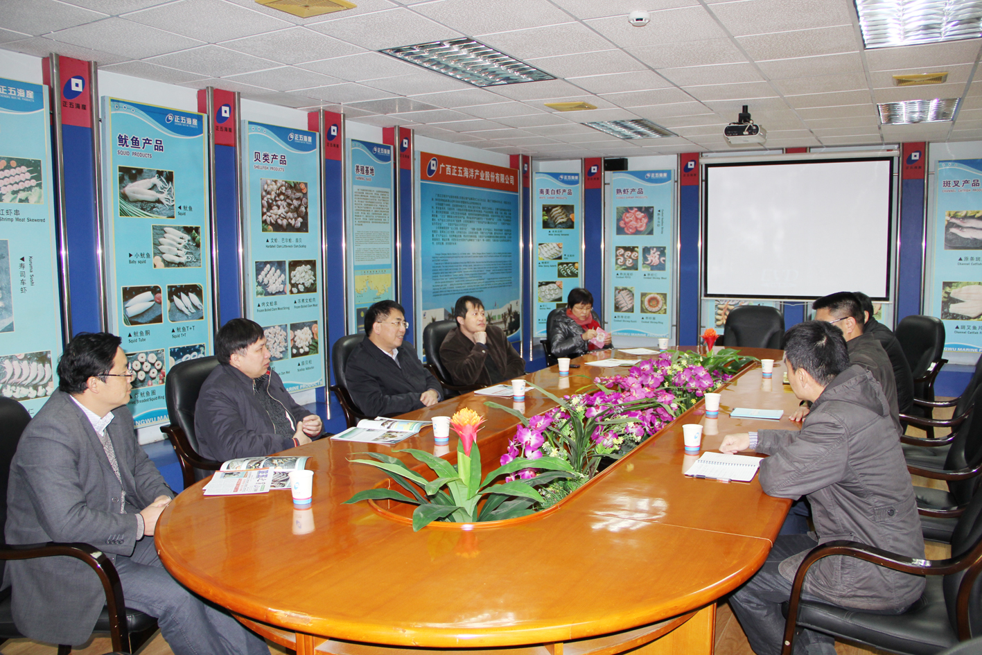 2月10日,廣西壯族自治區(qū)水產畜牧獸醫(yī)局副局長梁紀豪在防疫檢疫處調研員徐浩、廣西水產引育種中心副主任何金劍及北海市水產畜牧獸醫(yī)局相關人員的陪同下專程來到正五海產公司進行專題調研。