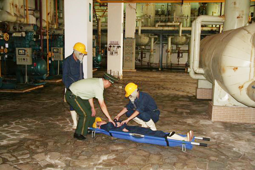根據(jù)“安全生產(chǎn)月”活動的總體部署,為有效預(yù)防、控制和及時消除突發(fā)環(huán)境污染事故的危害,提高環(huán)境污染事故救援應(yīng)急處置能力,建立健全環(huán)境預(yù)警和應(yīng)急機(jī)制,保障涉氨冷凍企業(yè)生產(chǎn)安全穩(wěn)定運(yùn)行,高新區(qū)安全生產(chǎn)領(lǐng)導(dǎo)小組、市銀海區(qū)安監(jiān)局與鴻成公司認(rèn)真編制了演練方案,精心進(jìn)行了準(zhǔn)備。演練的科目包括:干粉滅火器滅火、氨氣泄漏的救援及處置等。在演練現(xiàn)場,高新區(qū)管委會、銀海區(qū)安監(jiān)局的領(lǐng)導(dǎo)具體負(fù)責(zé)演練的統(tǒng)籌工作,銀海區(qū)消防大隊、銀海區(qū)安監(jiān)局的專業(yè)技術(shù)人員進(jìn)行了技術(shù)指導(dǎo)及演練點評。