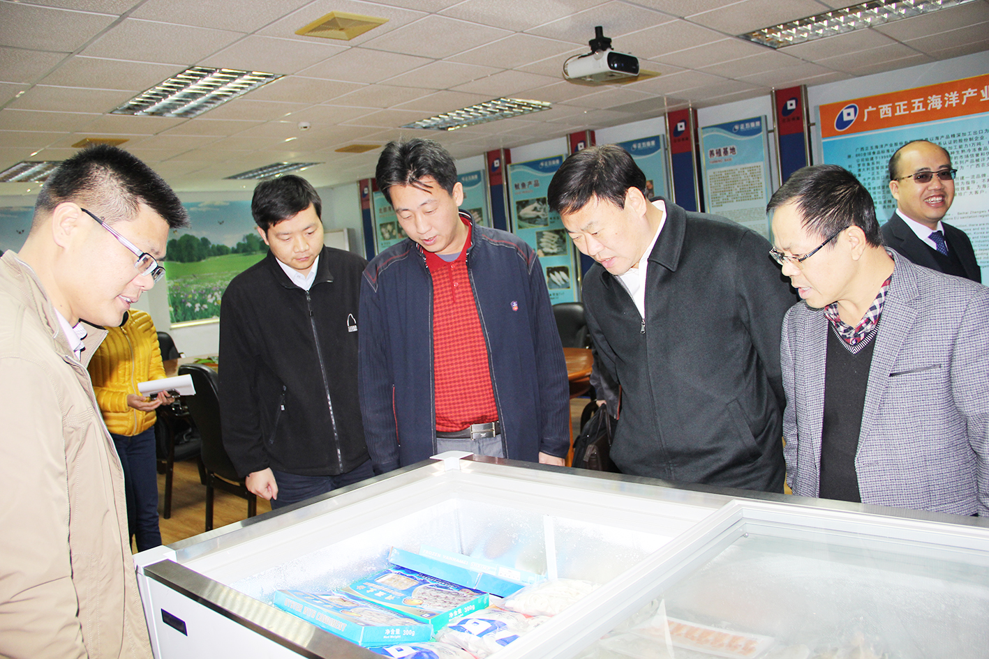 在正五海產(chǎn)公司,紀(jì)偉昕一行來到廣西貝類加工工程技術(shù)研究中心辦公室和實(shí)驗(yàn)室進(jìn)行了實(shí)地參觀;在產(chǎn)品陳列冷柜面前,紀(jì)偉昕對(duì)公司多樣化的產(chǎn)品贊不絕口。