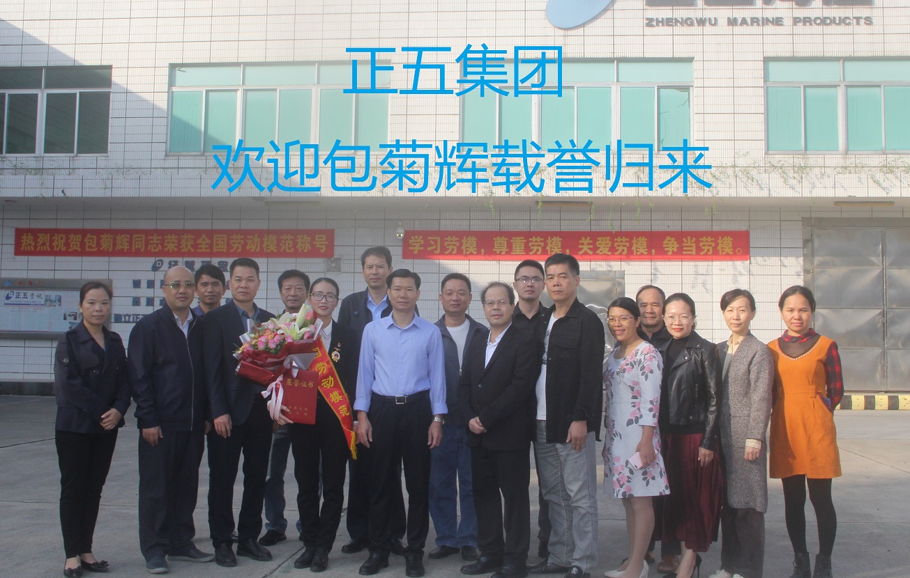 11月27日上午,正五集團董事長黃禮雄帶領集團總經(jīng)辦成員及各公司負責人、部門經(jīng)理在正五海產(chǎn)公司熱烈歡迎“全國勞動模范”包菊輝載譽歸來。