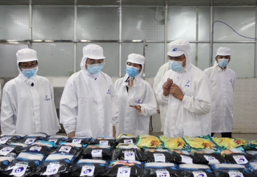 8月30日,北海市政府市長李莉在副市長李建華、市政府秘書長李柏強等陪同下深入企業(yè)督導調(diào)研疫情防控和企業(yè)復工復產(chǎn)期間,風塵赴赴來到正五海產(chǎn)公司看望企業(yè)管理和生產(chǎn)一線人員。她強調(diào),要全面落實“疫情要防住、經(jīng)濟要穩(wěn)住、發(fā)展要安全”重要要求,高效統(tǒng)籌疫情防控和經(jīng)濟社會發(fā)展,在落實落細常態(tài)化疫情防控措施的基礎(chǔ)上,全力以赴推動企業(yè)復工復產(chǎn),堅決守住疫情、穩(wěn)住經(jīng)濟,以實際行動迎接黨的二十大勝利召開。
